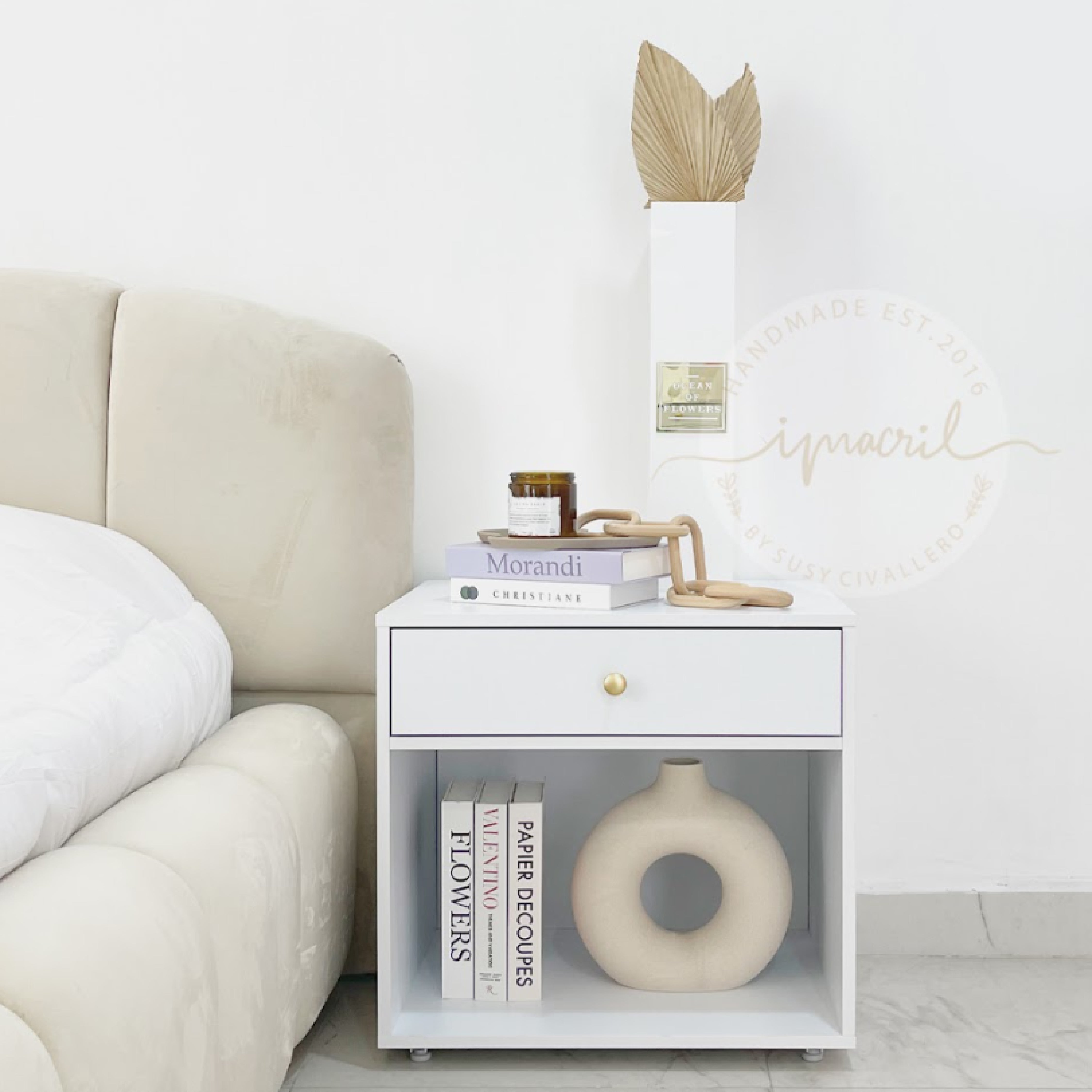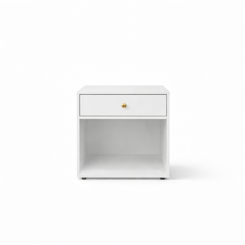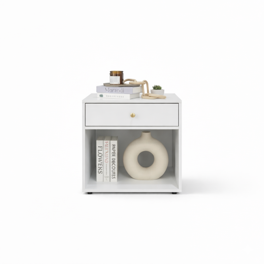 Un diseño moderno y funcional que aporta luz y orden a tu espacio. El Buró Ale cuenta con un cajón superior con jaladera metálica, ideal para guardar lo esencial, y un compartimento inferior abierto, perfecto para libros, revistas o decoración.